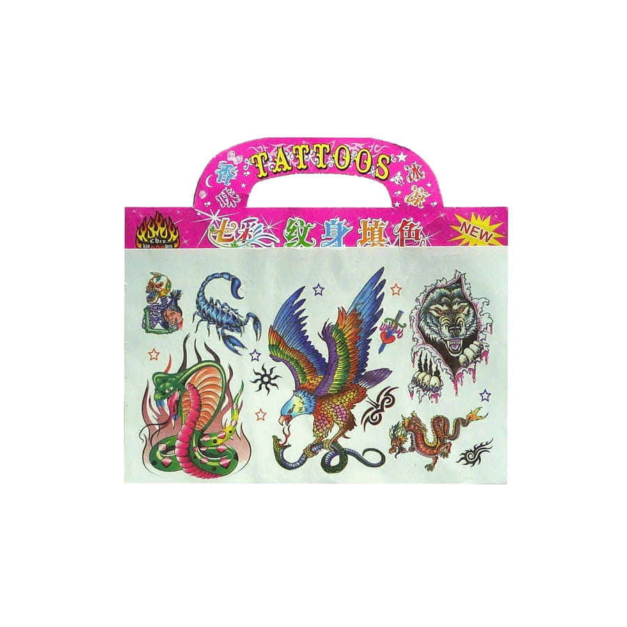 Il n'y a pas que les enfants qui aiment ces tatouages temporaires à mettre n'importe où sur le corps. C'est pour cela que nous proposons cette valisette de tatoo pour toute la famille. Vous aurez alors à disposition une feuille de 15/16 cm présentant des tatouages délébiles, que petits et grands pourront arborer fièrement. Les modèles sont multicolores et peuvent varier de la photo de présentation.