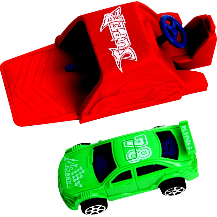 Et voici qu'une nouvelle voiture débarque sur la piste de course ! Elle fait une entrée spectaculaire grâce à son lanceur ! Il s'agit d'un petit véhicule de sport de 7,5 cm de long, fourni avec un lanceur à volant. Il existe en plusieurs couleurs mais vous n'aurez pas le choix de la couleur lors de la commande. Cette belle voiture ultra-rapide va remporter la victoire et sera bientôt très célèbre !