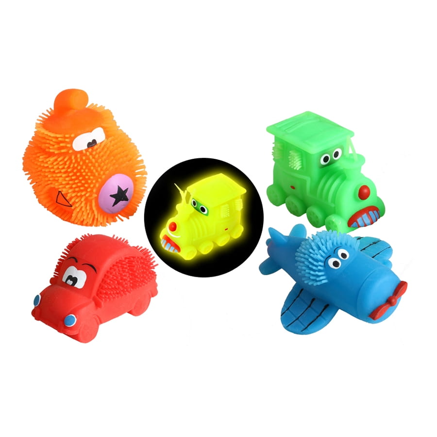 Voiture, train, avion et autres moyens de transport se retrouvent dans des jouets fantastiques ! Offrez-lui son premier véhicule grâce à ce fabuleux modèle à peau de hérisson. Rigolos et tout en couleurs, ces jouets sont également lumineux. Ils éclaireront ses nuits et ses rêves seront remplis d'aventures et de voyages ! Ils mesurent 8 cm et se vendent à l'unité. Notez simplement que vous ne pourrez pas choisir le modèle à la commande, il dépendra de la disponibilité du stock.