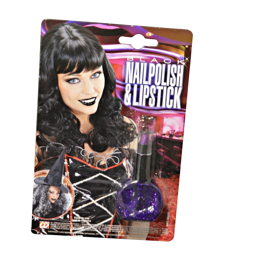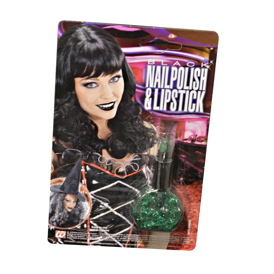 N'avez-vous jamais rêvé d'adopter le style gothique ? Les dames sont à l'honneur dans ces accessoires de cosmétiques. Vernis à ongles et lipstick sont mis à votre disposition. Ils sont tous deux de couleur noire, à porter à Halloween ou pendant un concert punk rock. Vous pouvez les porter avec un déguisement de sorcière ou de vampire, ou tout simplement mettre une tenue habituelle. Cet ensemble fabuleux est aussi disponible en vert ou en violet.