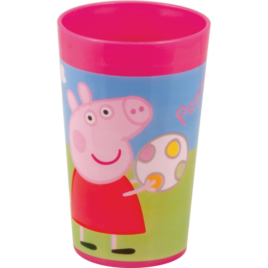 Le verre en plastique rigide de Peppa Pig est de couleur rose.