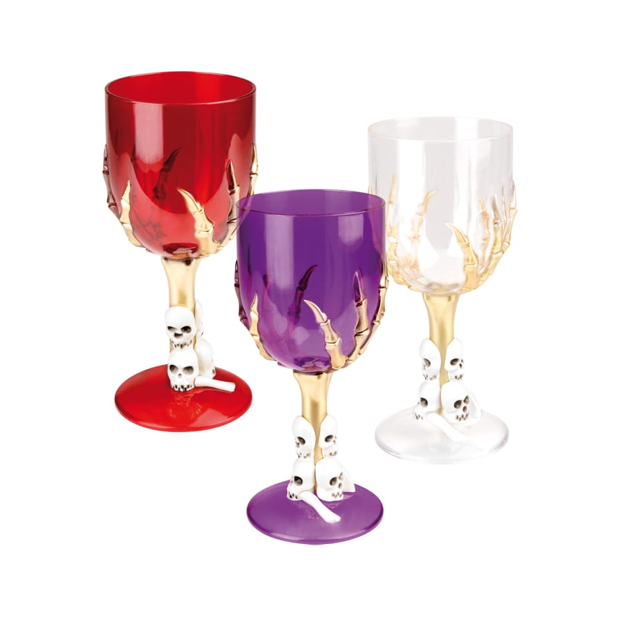 Halloween sera particulier cette année ! Vos convives pourront s'abreuver dans des ustensiles tous droits sortis d'un film d'horreur. Servez-leur une boisson couleur sang dans ces verres de style gothique, effet épouvante garanti ! Vendus à l'unité, ces verres à pied sont soit de couleur rouge, blanche ou violet, et ils sont ornés de petites têtes de mort. A noter que le choix de la couleur ne sera pas possible car il dépendra de l'arrivage.