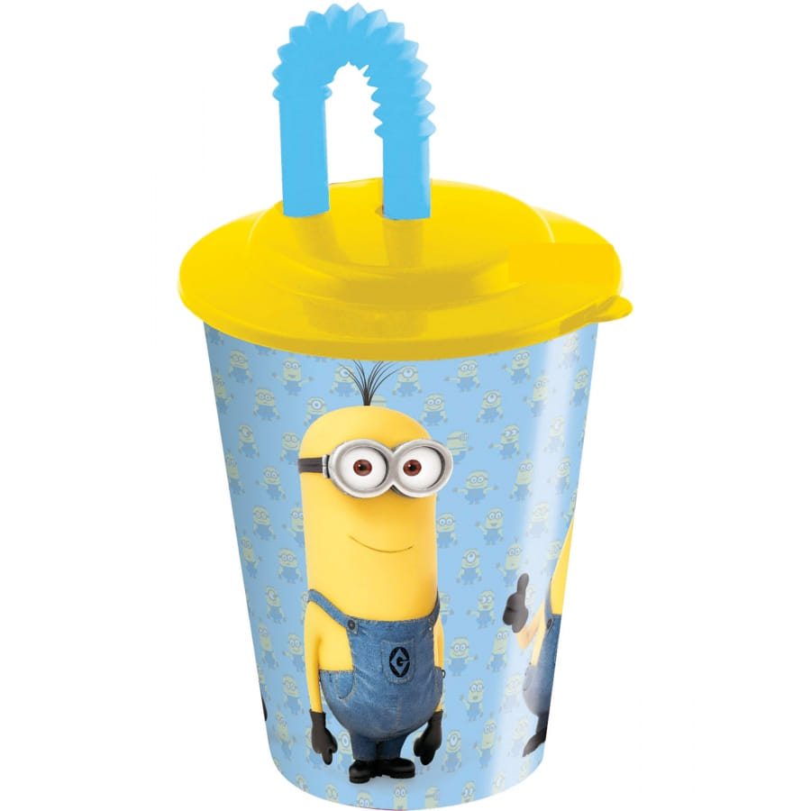 Ce Verre Minions avec paille est en plastique et mesure environ 12 x 8.
