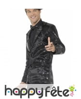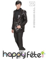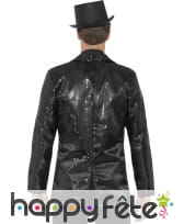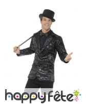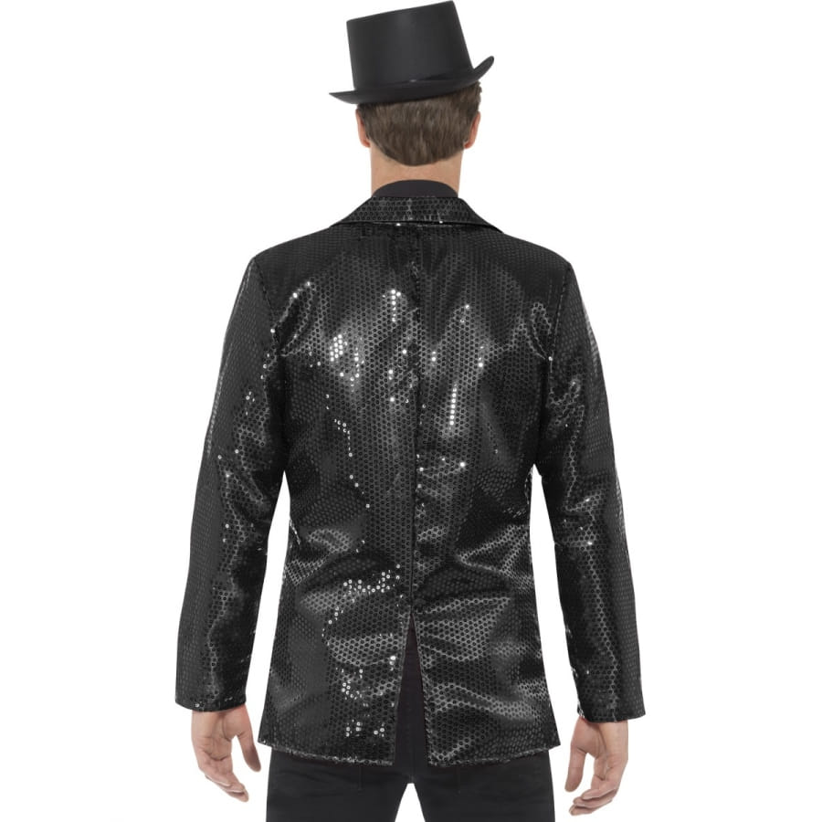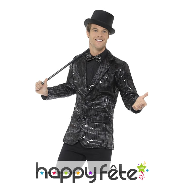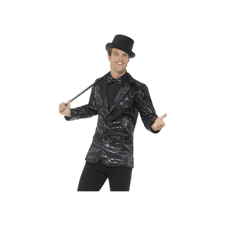 Pour incarner un danseur des années charleston, osez les paillettes avec cette veste à sequins noirs pour homme. La veste est munie de deux boutons sur le devant, deux poches sur les côtés et un col à revers. Pour plus de style retrouvez sur notre site un noeud à sequins assorti à la veste, un chapeau et une canne.