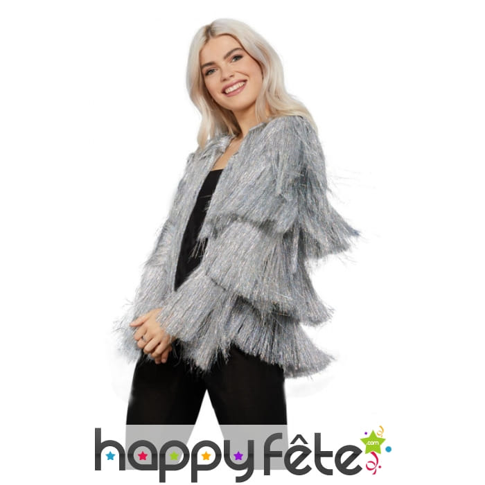 Les avis clients concernant veste disco argentée à franges pour femme