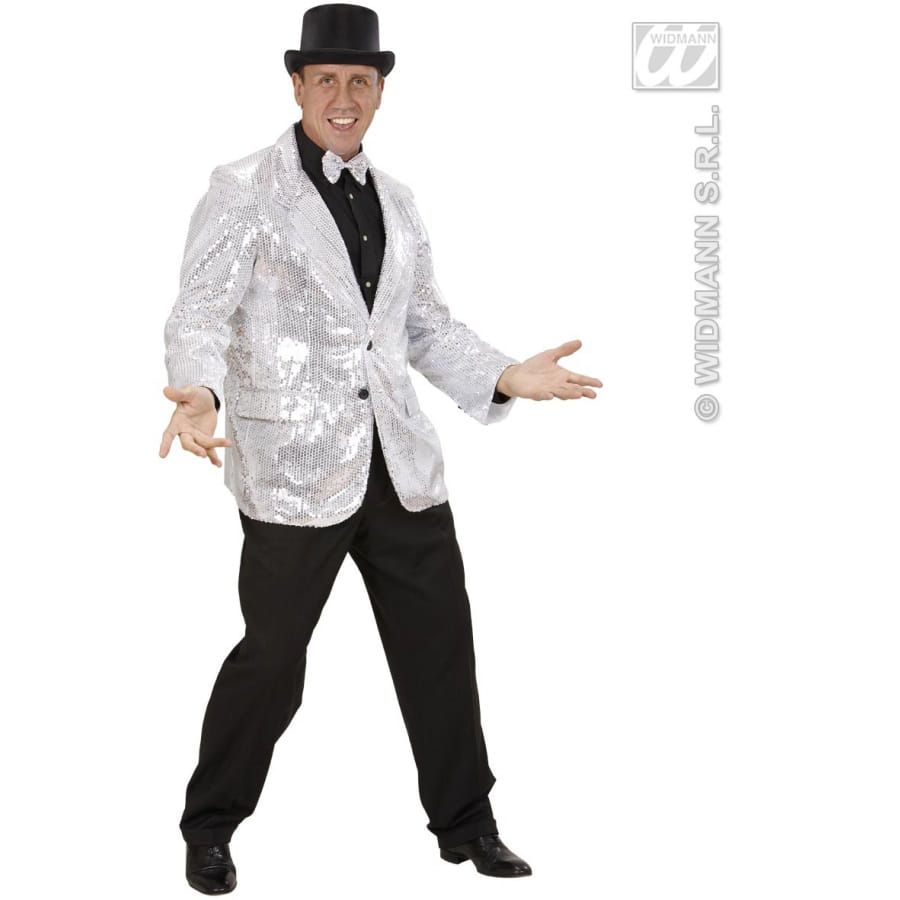 Une veste disco fever recouverte de paillettes argentées. Cet accessoire est disponible en taille M, XL. Cette veste est parfaite pour se déguiser en danseur disco des années 70-80.