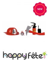 Le lot contient également une hache et un extincteur en plastique, avec un talkie walkie factice.