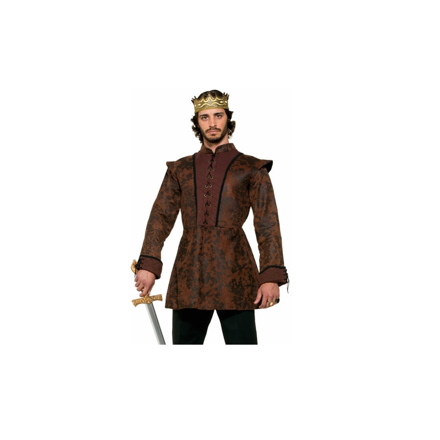 Ce bel accessoire de déguisement veste marron médiévale est réservé à la gente masculine, de taille adulte. Cette veste marron est imprimée. Ses manches sont longues et semi-ouvertes avec des lacets aux poignets. On trouve également un magnifique laçage sur le devant, terminé par un splendide col Mao. Avec cet accessoire, vous serez en mesure d'incarner un véritable Roi du Moyen Age à l'occasion d'un bal costumé ou d'une soirée médiévale. Pour un effet plus bluffant, rajoutez quelques accessoires supplémentaires, comme un sabre ou une couronne,... également disponibles sur notre site !