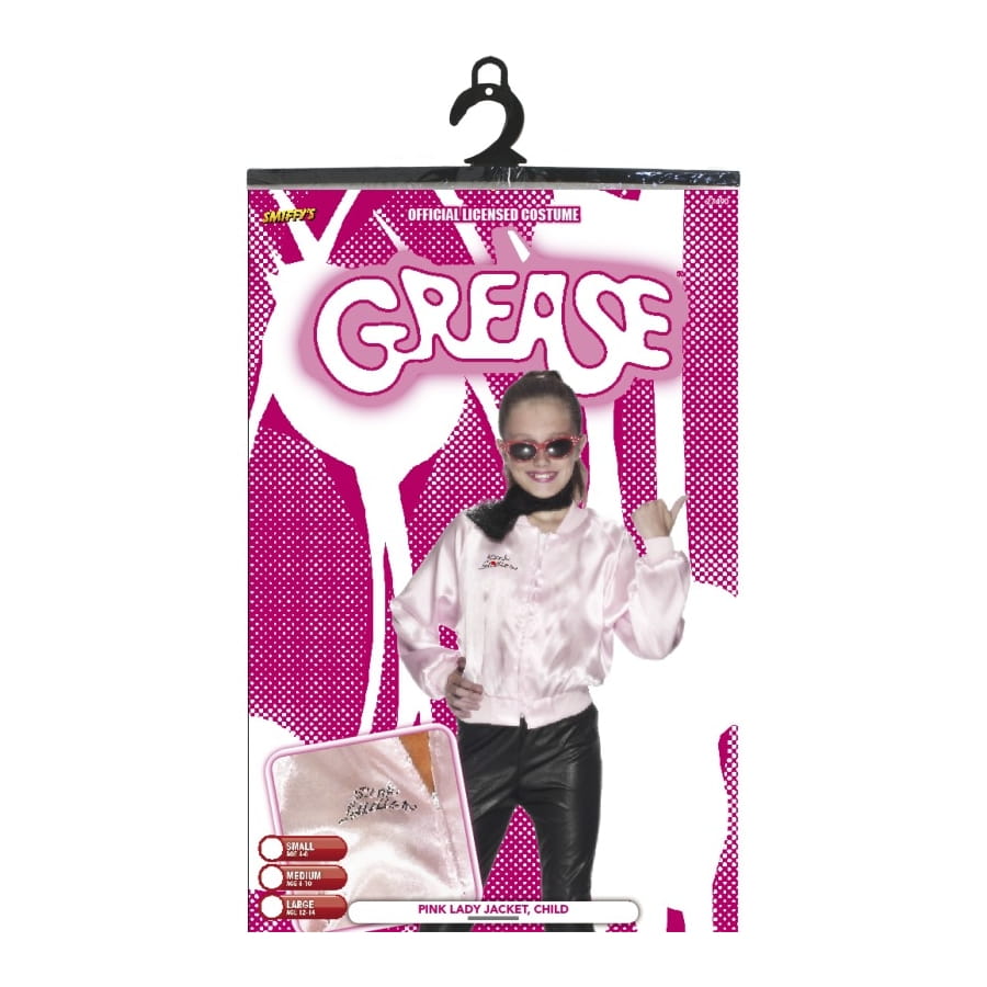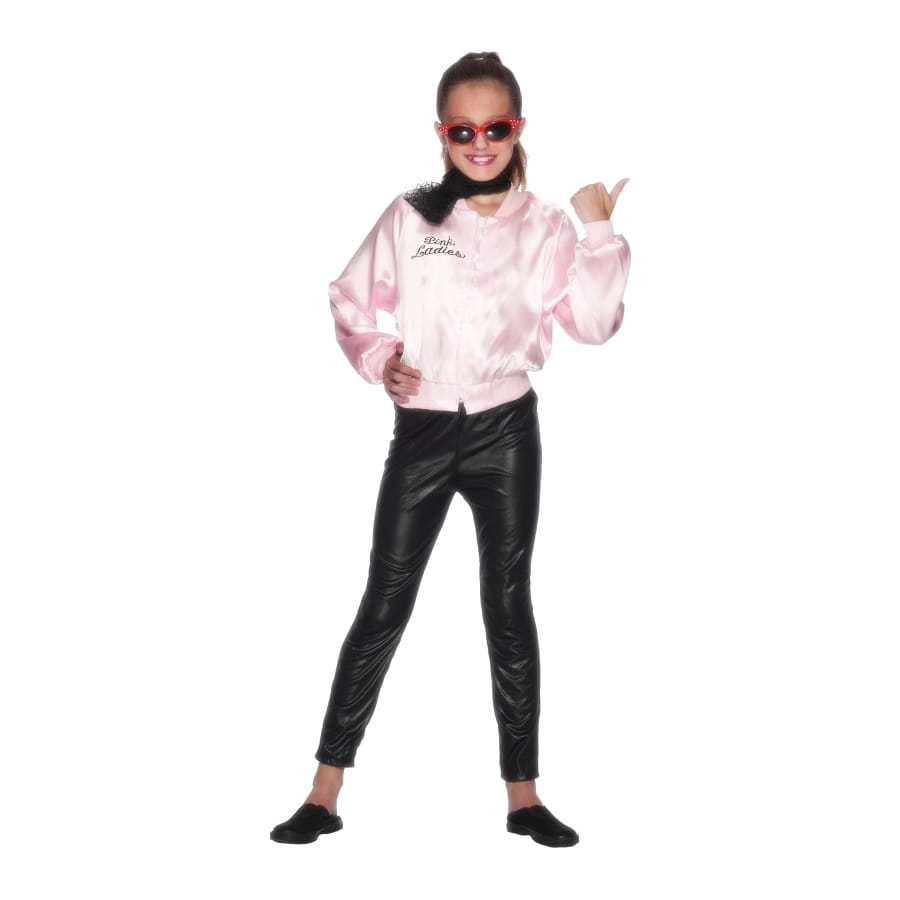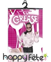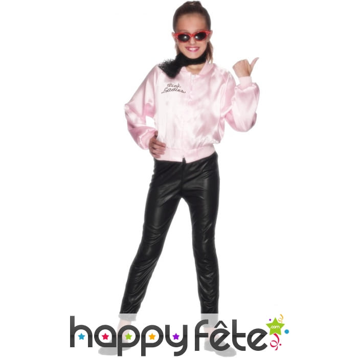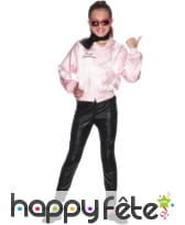 Un costume de pink lady pour votre fille, elle sera la plus belle dans ce déguisement. Elle peut le porter pour une fête sous le thème rock n roll ou encore le cinéma. Ce costume est un top, une veste rose, un bandana noir et un cache-oeil.