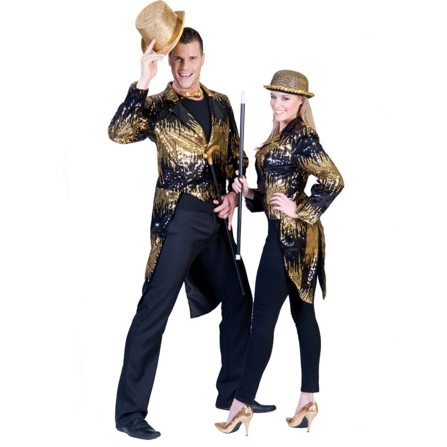 Osez le style chic et original des années 20 grâce à cette Veste queue de pie or noir unisexe.