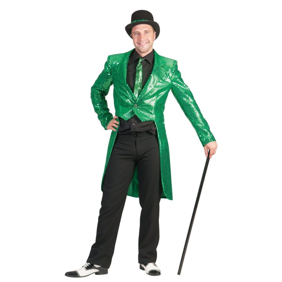 Nous vous dévoilons ici notre veste queue de pie sequins verts, homme.