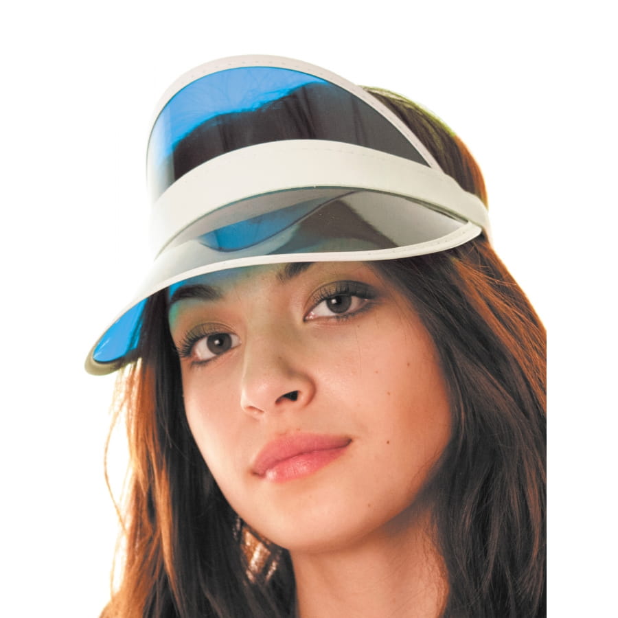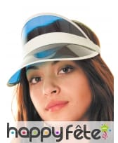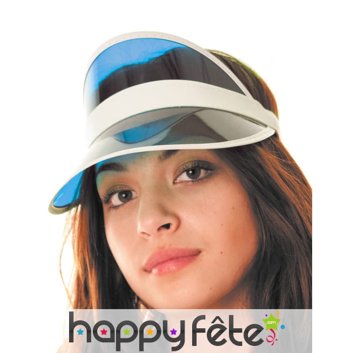 la visière est typique des années 80. Elle se portait par les férus de poker. Elle est faite d'une visière à 2 parties transparentes de couleur bleue. C'est une visière qui conviendra aussi bien aux hommes qu'aux femmes.