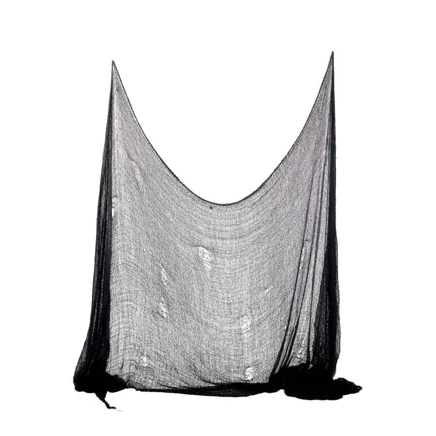 Rideau d'épouvante semi-transparent de couleur noire. La taille de ce rideau est de 75 centimètres de long sur 3 mètres de large. Utilisez-le pour masquer vos grandes surfaces à l'occasion d'Halloween.