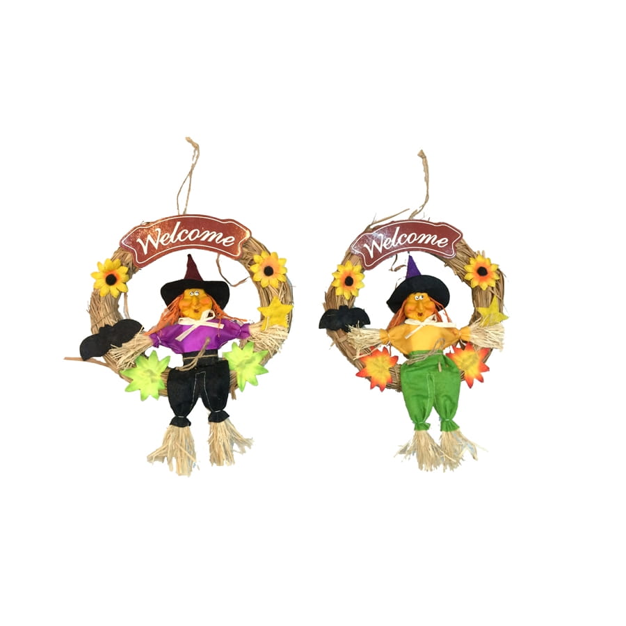 Le meilleur décor pour la meilleure fête ! Cette décoration Welcome Épouvantail est multicolore, mesurant 20 x 26 cm. Elle sera prête pour compléter au mieux votre décoration et accueillir vos convives le soir d'Halloween. Ce produit est vendu à l'unité, vous n'aurez pas le choix du modèle à la commande.