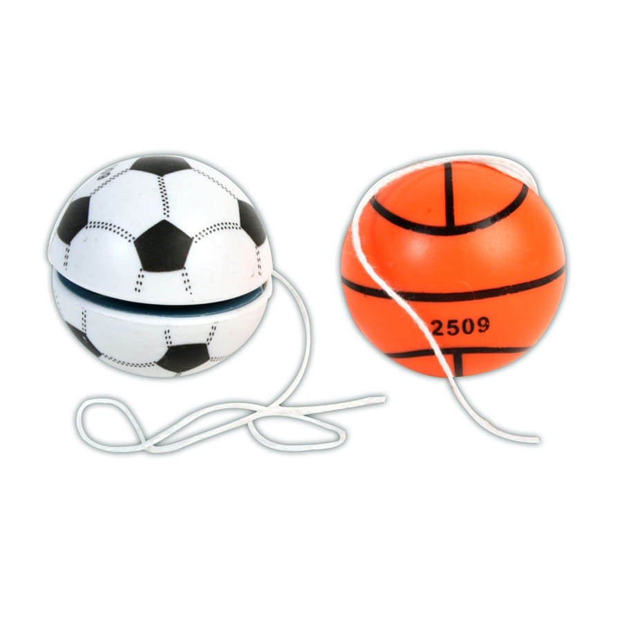 Les enfants ne connaissent sûrement pas la folie des yoyos ! Offrez-leur ce jouet fascinant avec lequel ils ne pourront jamais s'ennuyer. L'article présente un yoyo en forme de ballon de foot ou de ballon de basket. Il fait 4 cm de dimension, et arbore les couleurs authentiques de ces ballons. Ces yoyos se vendent à l'unité, et vous n'aurez pas le choix du modèle à la commande. Défiez vos enfants sur les figures extrêmes que vous pourrez effectuer avec un simple yoyo !